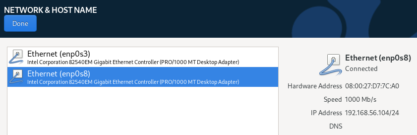 Back in the Summary, still under System, click Network & Host Name. The first adapter in the list will be what the VM uses to connect with the outside world (Internet). The 2nd adapter is internal to the host machine, and should have an IP address similar to 192.168.56.x/24, where the x will be something assigned automatically.
