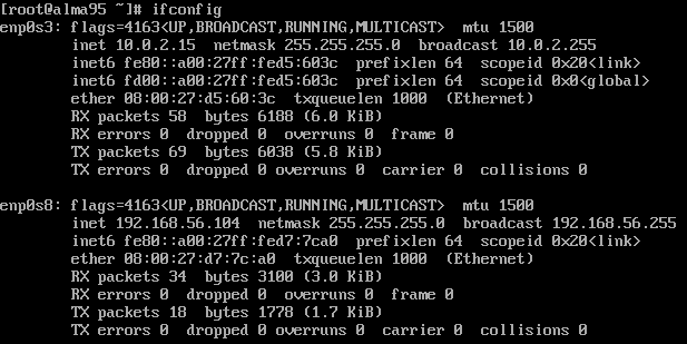 The 2nd interface (enp0s8) is using the host-only adapter setup when the VM was created. It uses an IP address of 192.168.56.104 in this example. That’s also the same IP we’ll use to connect to the VM from the host.